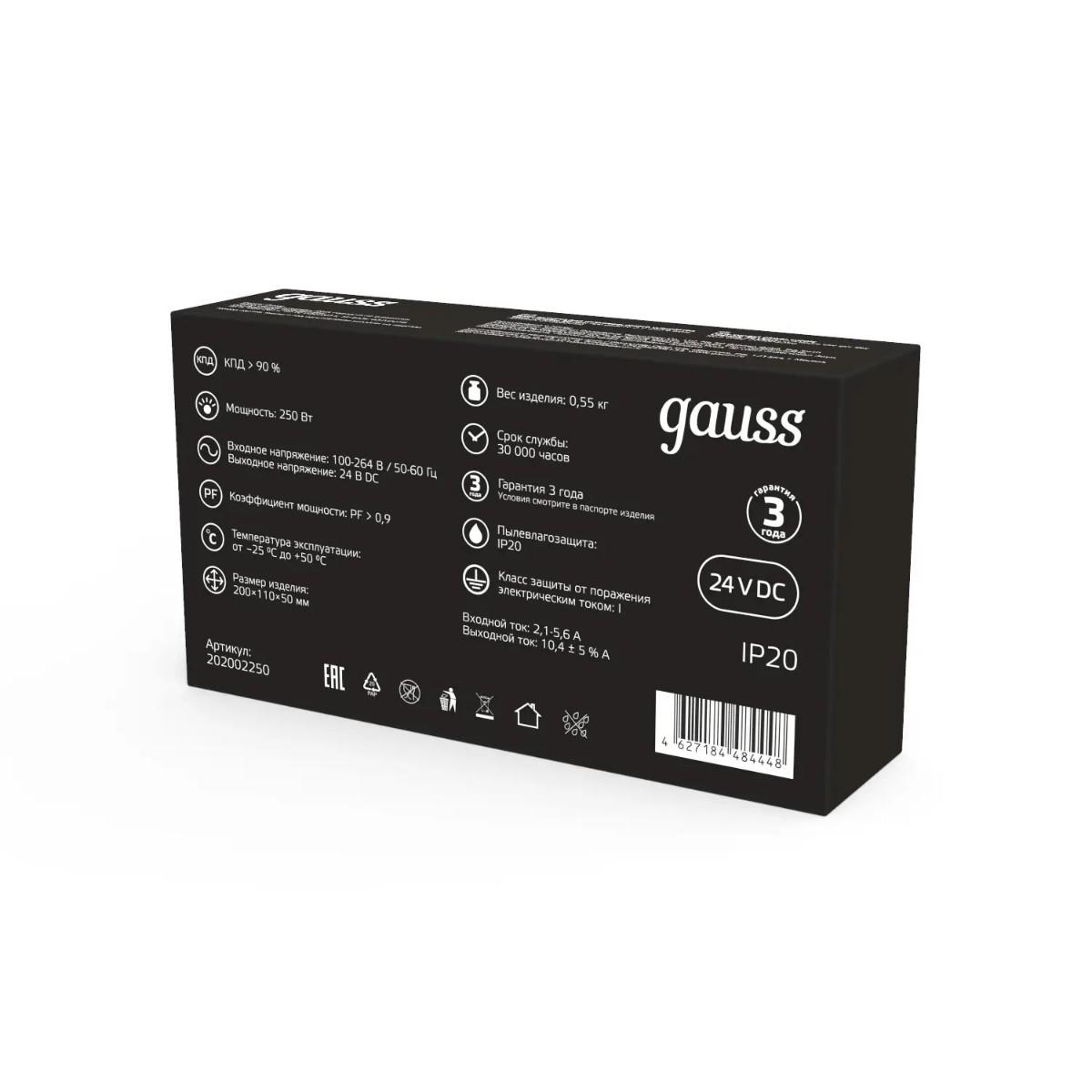 Блок питания Gauss 250W 24V IP20 202002250