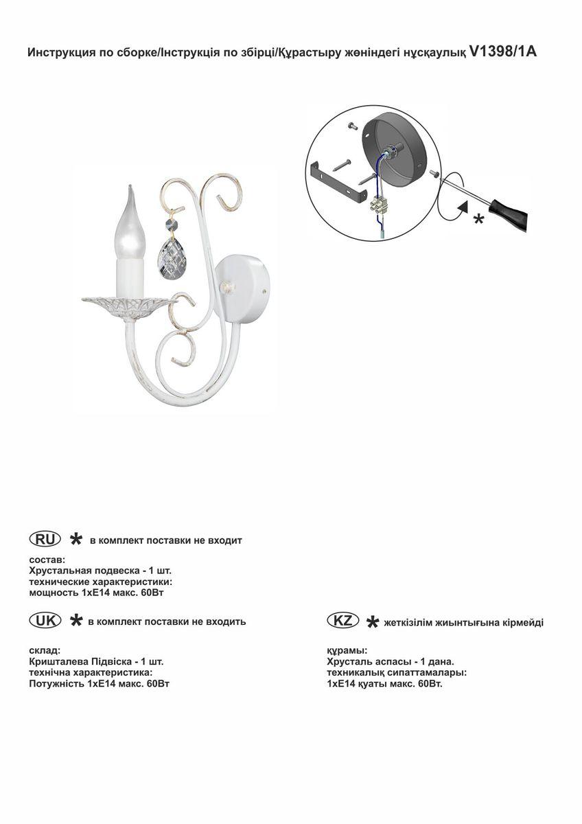 Бра Vitaluce V1398/1A - купить по низкой цене. Описание, характеристики, фото. Выгодная программа лояльности - скидки и бонусы по картам рассрочки, с доставкой на дом по Минску и всей Беларуси.