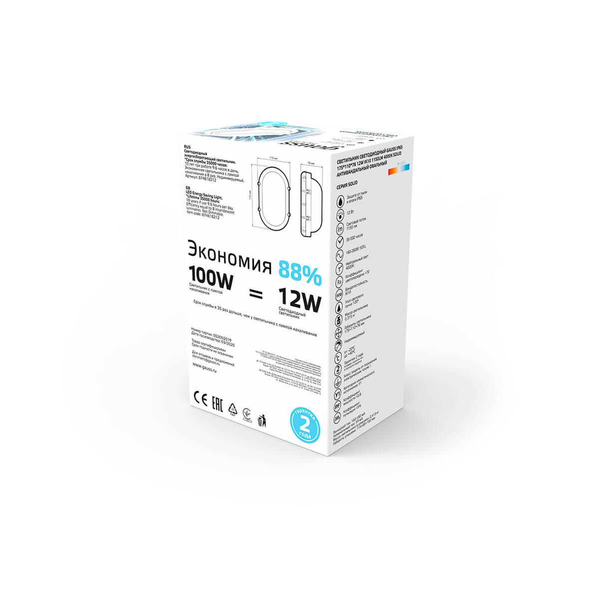 Настенно-потолочный светодиодный светильник Gauss Solid 874618212 - купить по низкой цене. Описание, характеристики, фото. Выгодная программа лояльности - скидки и бонусы по картам рассрочки, с доставкой на дом по Минску и всей Беларуси.