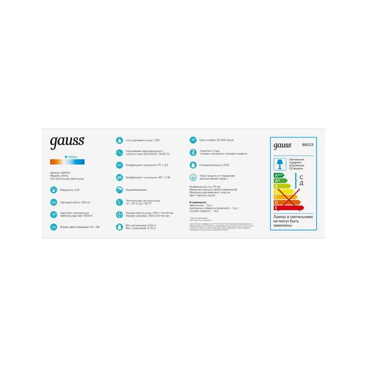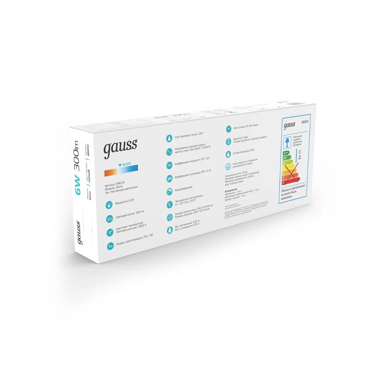 Настенный светодиодный светильник Gauss Elena BR033 - купить по низкой цене. Описание, характеристики, фото. Выгодная программа лояльности - скидки и бонусы по картам рассрочки, с доставкой на дом по Минску и всей Беларуси.