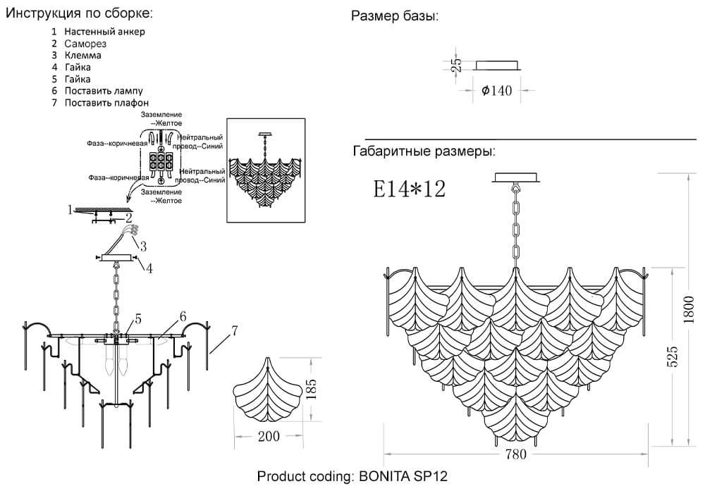 Подвесная люстра Crystal Lux Bonita SP14 L1200 - купить по низкой цене. Описание, характеристики, фото. Выгодная программа лояльности - скидки и бонусы по картам рассрочки, с доставкой на дом по Минску и всей Беларуси.