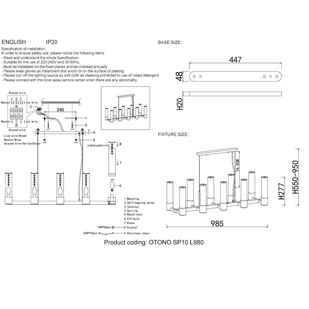Подвесная люстра Crystal Lux OTONO SP10 L980 BRASS/TRANSPARENTE - купить по низкой цене. Описание, характеристики, фото. Выгодная программа лояльности - скидки и бонусы по картам рассрочки, с доставкой на дом по Минску и всей Беларуси.