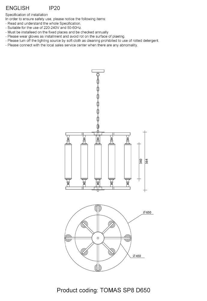 Подвесная люстра Crystal Lux Tomas SP8 D650 Brass - купить по низкой цене. Описание, характеристики, фото. Выгодная программа лояльности - скидки и бонусы по картам рассрочки, с доставкой на дом по Минску и всей Беларуси.
