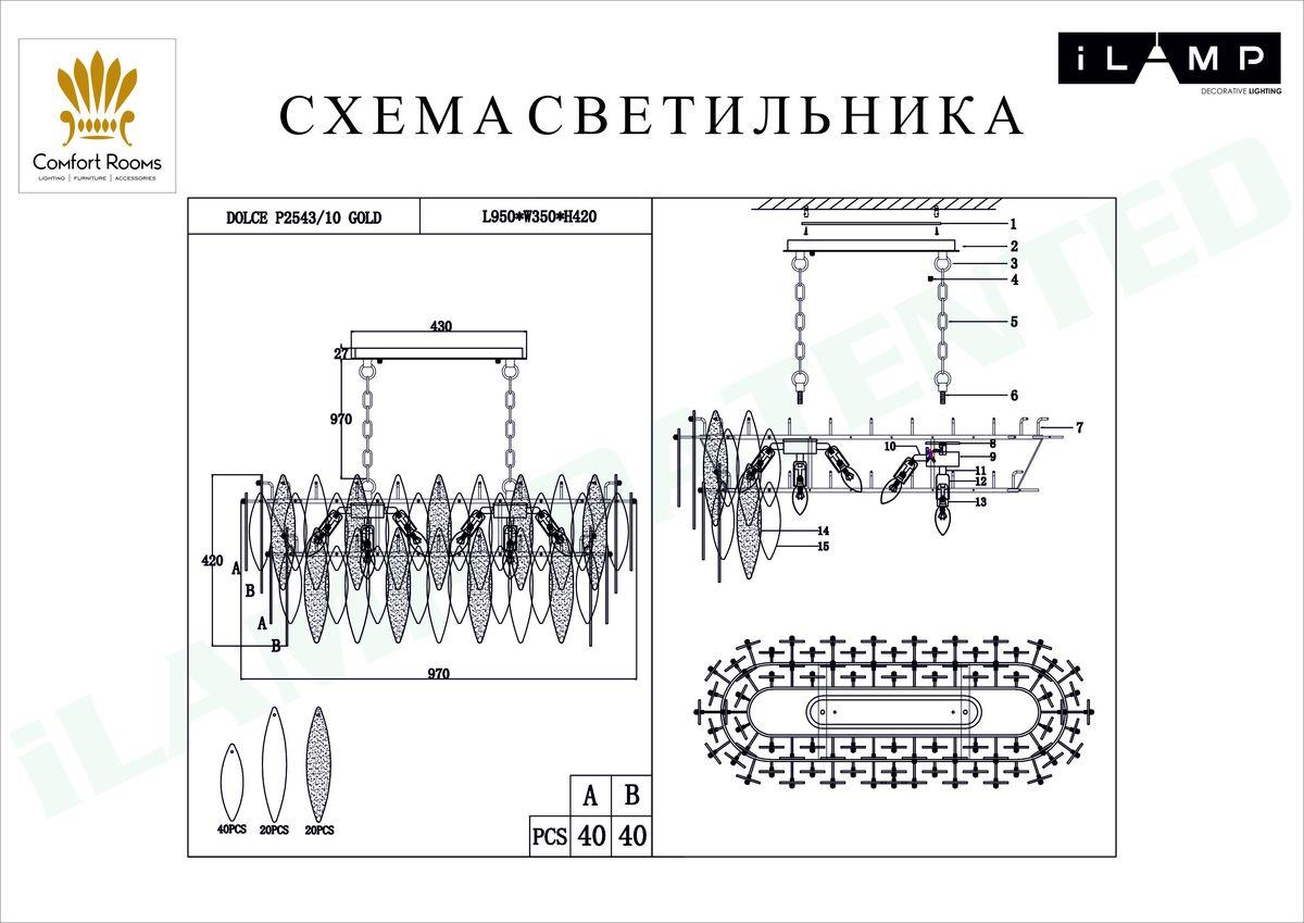 Подвесная люстра iLamp Dolce P2543-10 GD - купить по низкой цене. Описание, характеристики, фото. Выгодная программа лояльности - скидки и бонусы по картам рассрочки, с доставкой на дом по Минску и всей Беларуси.