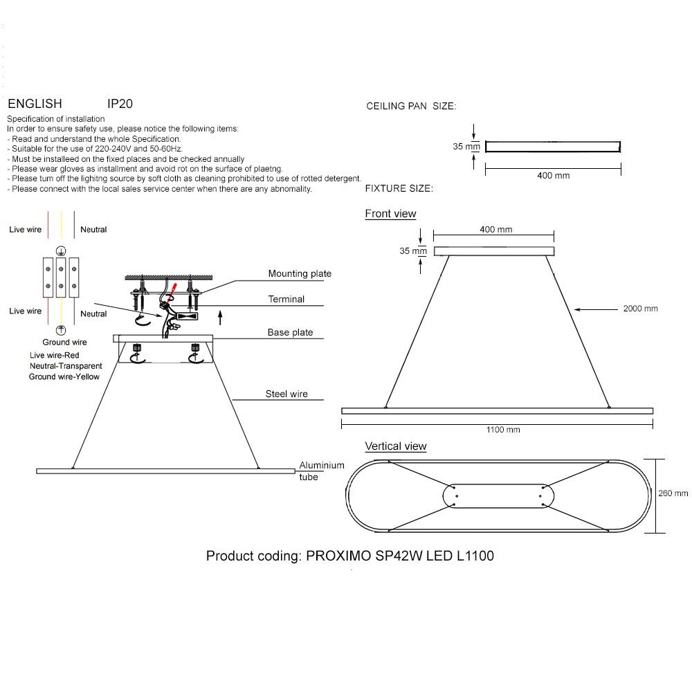 | Длина подвеса, мм | 2000 |