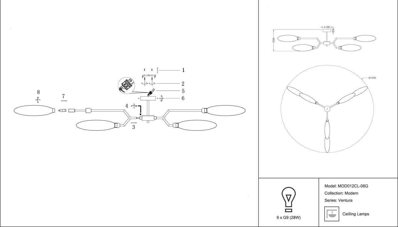 Потолочная люстра Maytoni Ventura MOD012CL-06G - купить по низкой цене. Описание, характеристики, фото. Выгодная программа лояльности - скидки и бонусы по картам рассрочки, с доставкой на дом по Минску и всей Беларуси.