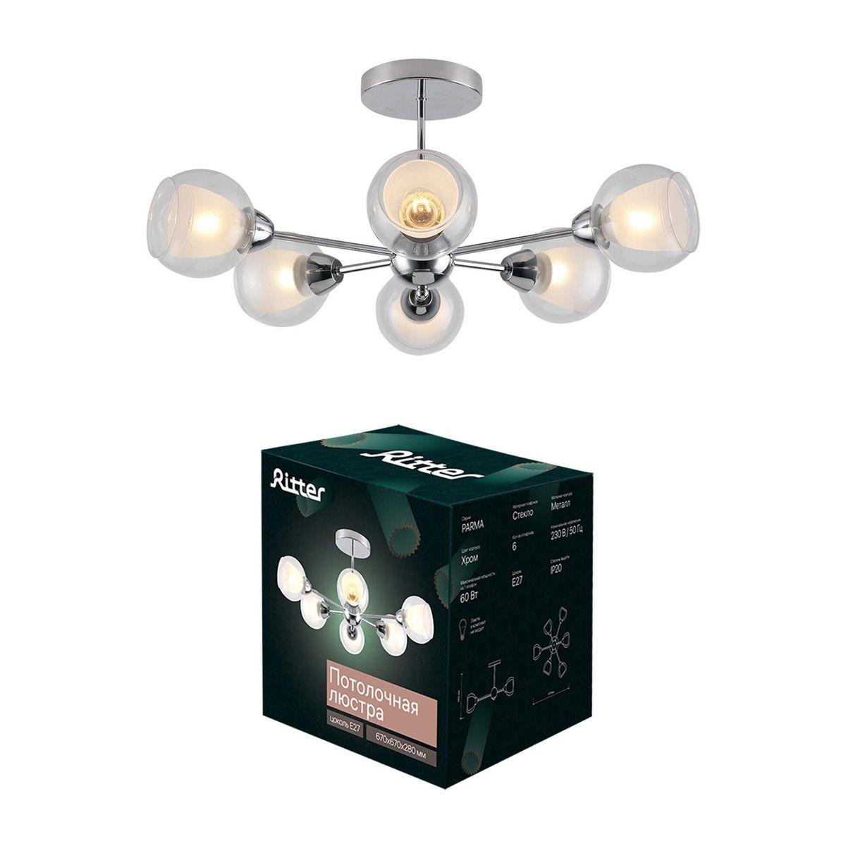 Потолочная люстра Ritter Parma 52516 5 - купить по низкой цене. Описание, характеристики, фото. Выгодная программа лояльности - скидки и бонусы по картам рассрочки, с доставкой на дом по Минску и всей Беларуси.