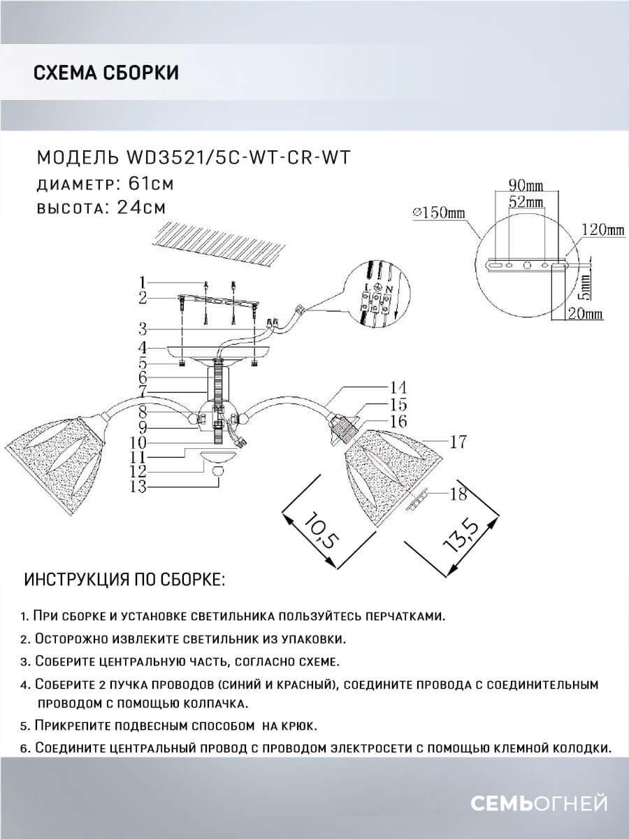 Потолочная люстра Seven Fires Ayna WD3521/5C-WT-CR-WT - купить по низкой цене. Описание, характеристики, фото. Выгодная программа лояльности - скидки и бонусы по картам рассрочки, с доставкой на дом по Минску и всей Беларуси.