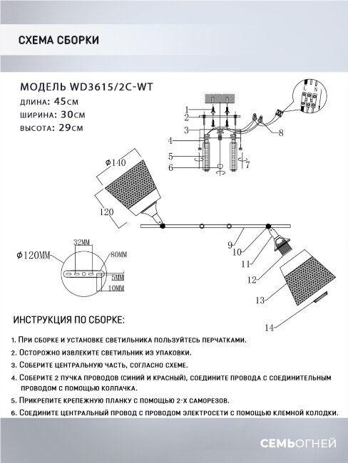 Потолочная люстра Seven Fires Kerem WD3615/2C-WT - купить по низкой цене. Описание, характеристики, фото. Выгодная программа лояльности - скидки и бонусы по картам рассрочки, с доставкой на дом по Минску и всей Беларуси.
