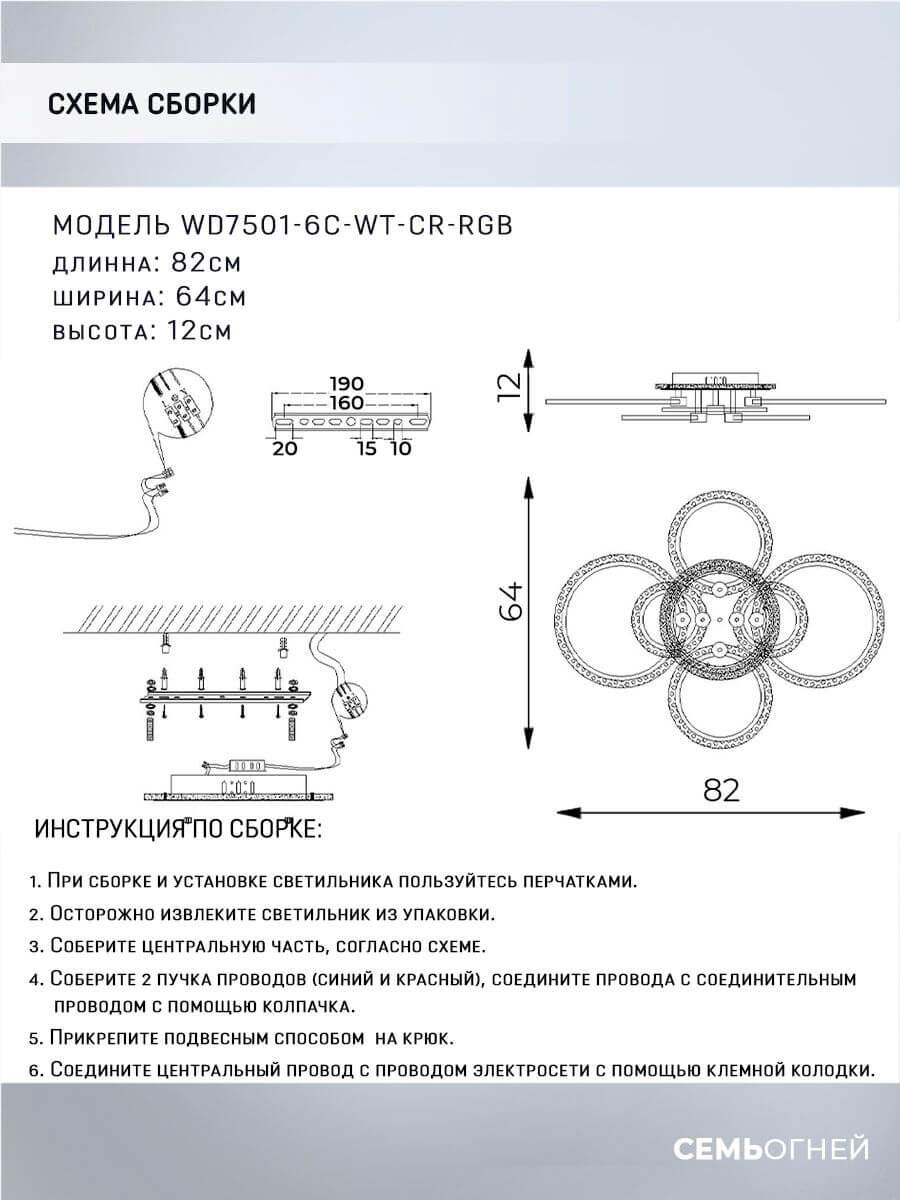 Потолочная светодиодная люстра Seven Fires Fumane WD7501/6C-WT-CR-RGB - купить по низкой цене. Описание, характеристики, фото. Выгодная программа лояльности - скидки и бонусы по картам рассрочки, с доставкой на дом по Минску и всей Беларуси.