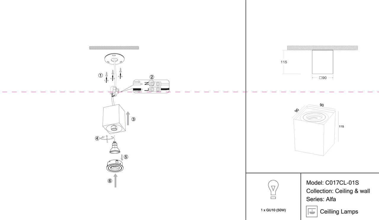 | Место установки | На потолок |