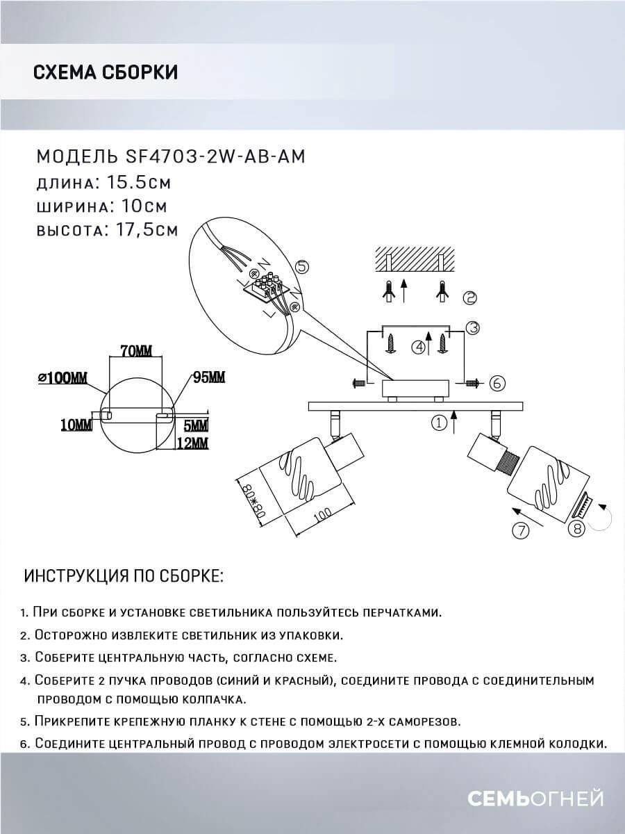 Спот Seven Fires Oreli SF4703/2W-AB-AM - купить по низкой цене. Описание, характеристики, фото. Выгодная программа лояльности - скидки и бонусы по картам рассрочки, с доставкой на дом по Минску и всей Беларуси.