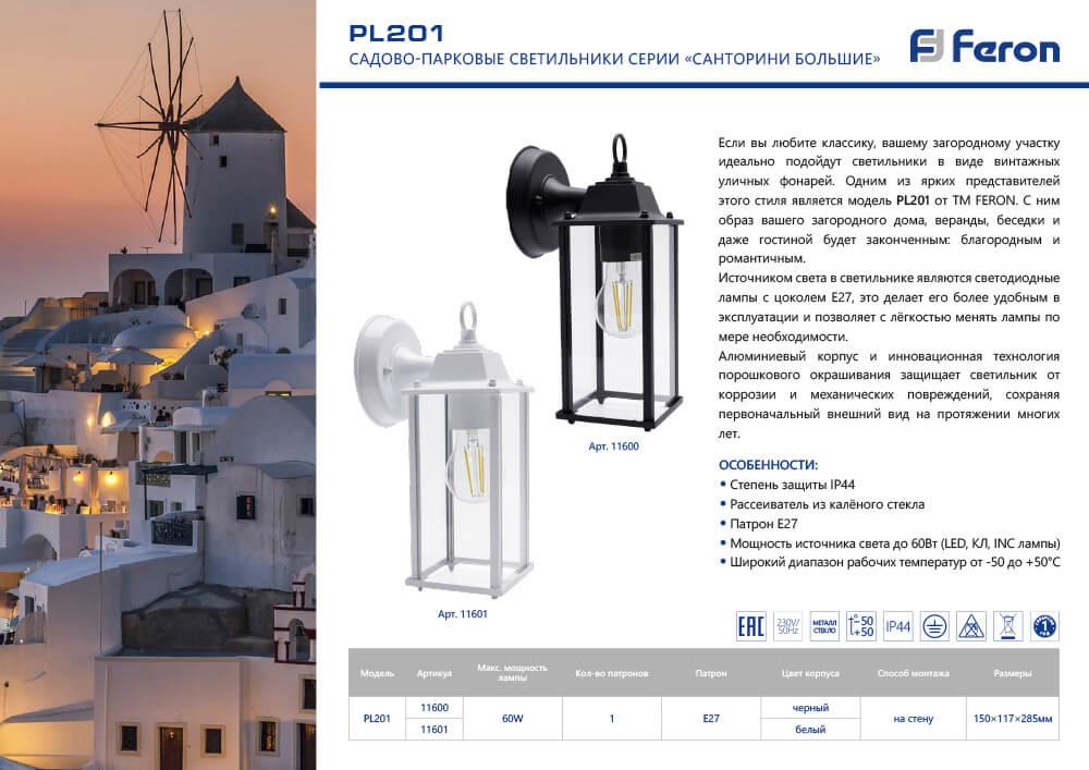 Уличный настенный светильник Feron Санторини PL201 11600 - купить по низкой цене. Описание, характеристики, фото. Выгодная программа лояльности - скидки и бонусы по картам рассрочки, с доставкой на дом по Минску и всей Беларуси.